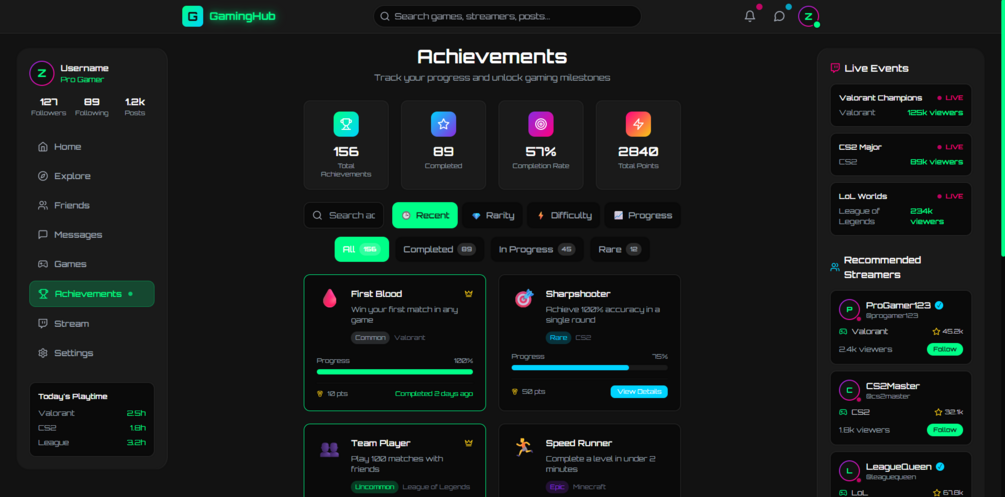 - **Rarity System**: Common, Rare, Epic, and Legendary achievements