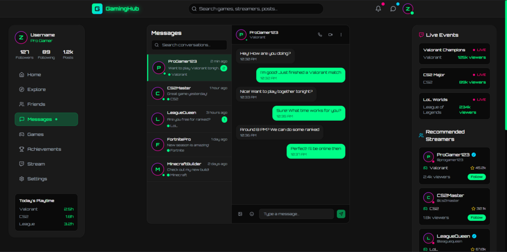 - **Live Updates**: "User X is playing CS2 on de_dust2" style updates